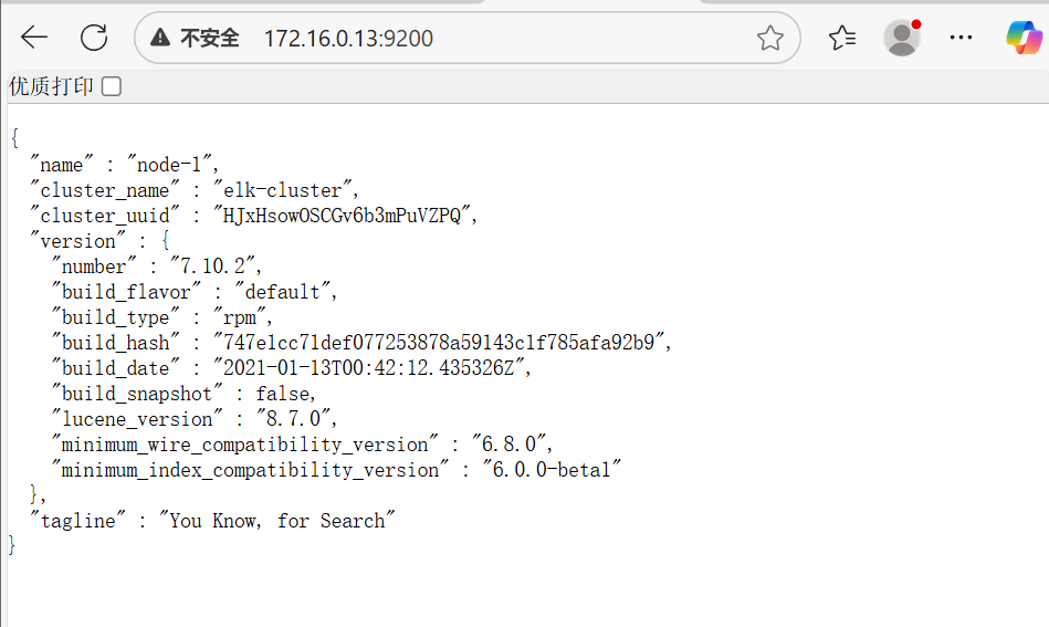 # ES启动较慢,等待30秒后验证:curl http://172.16.0.13:9200