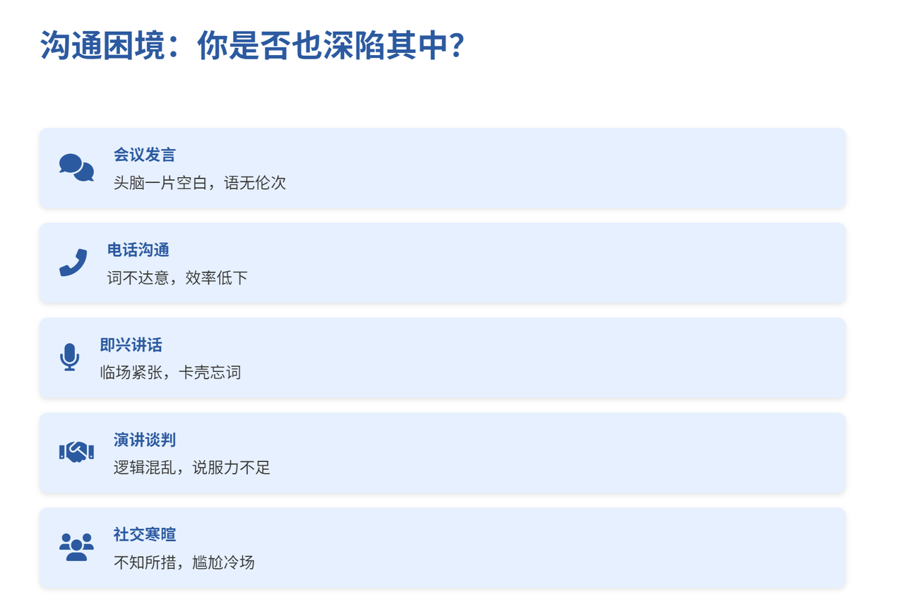 拆解优先,降低压力:将复杂表达(如演讲、汇报)拆为多个 10 秒单元,每单元聚焦 1 个要点。例如 1 分钟演讲 = 4 个 10 秒段落 + 3 个连接词,避免 “大脑空白”,新手也能逐步掌握。