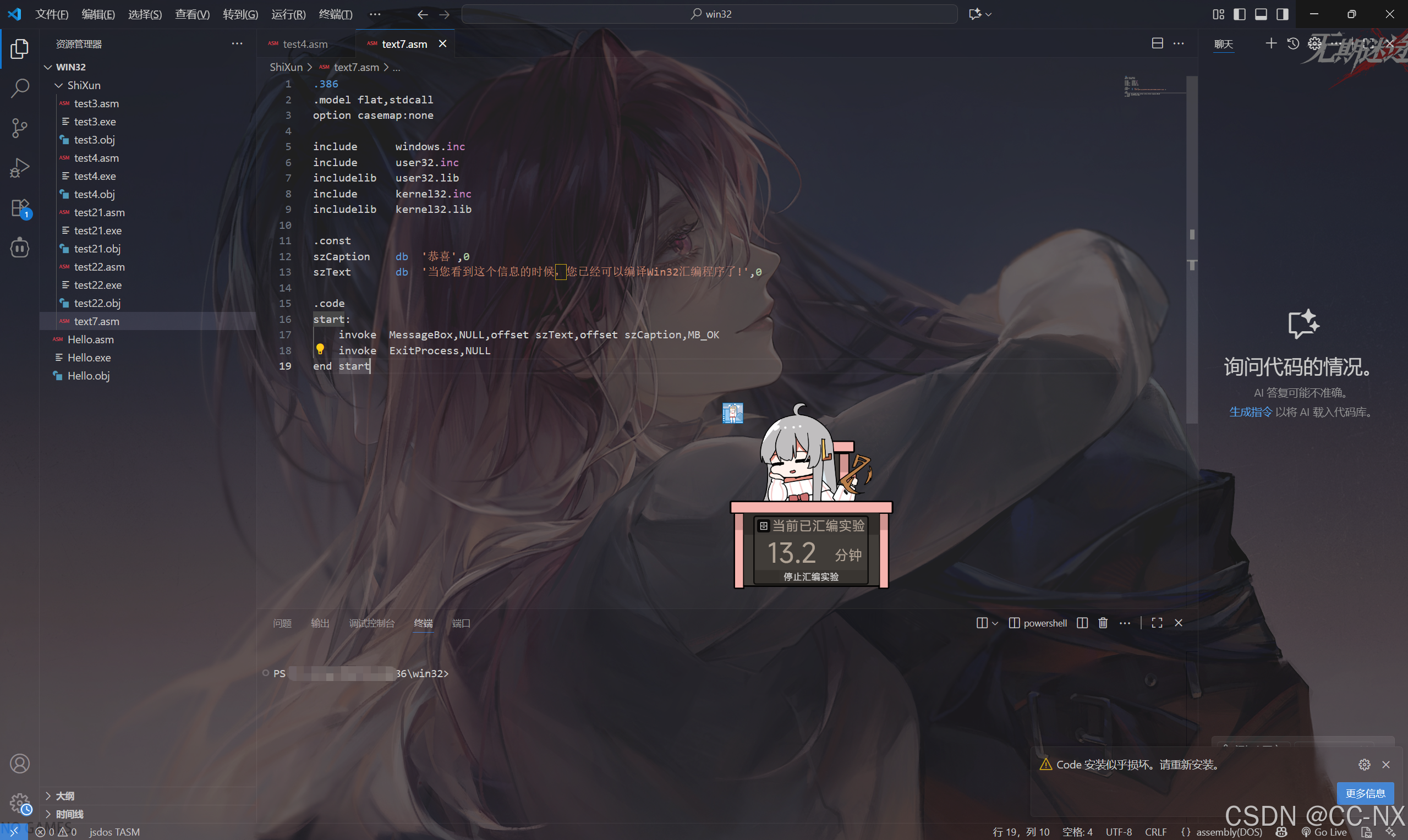 - 使用 MASM32 自带的 ml.exe 和 link.exe