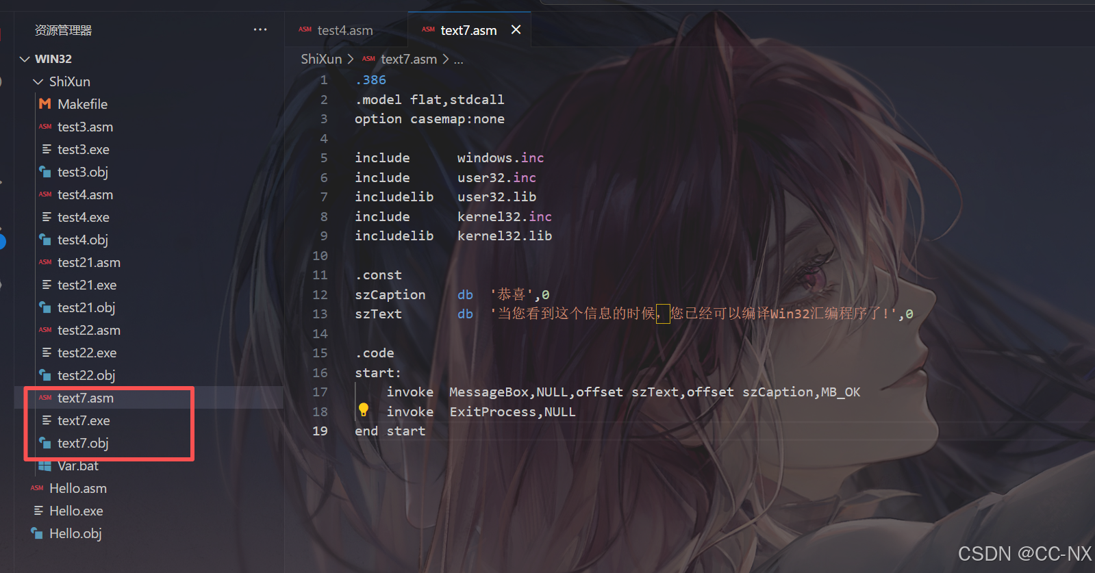 在test7.asm和Makefile所在的目录下执行: