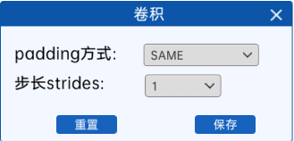 在“卷积”组件中定义卷积核在卷积过程中的步长以及Padding方式,这里我们已经固定好Padding方式为“SAME”,并且步长为1。