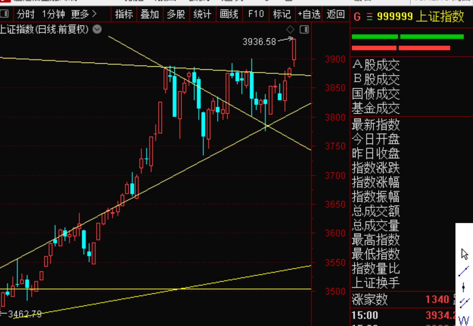 目前大盘突破上沿,开始走单边!