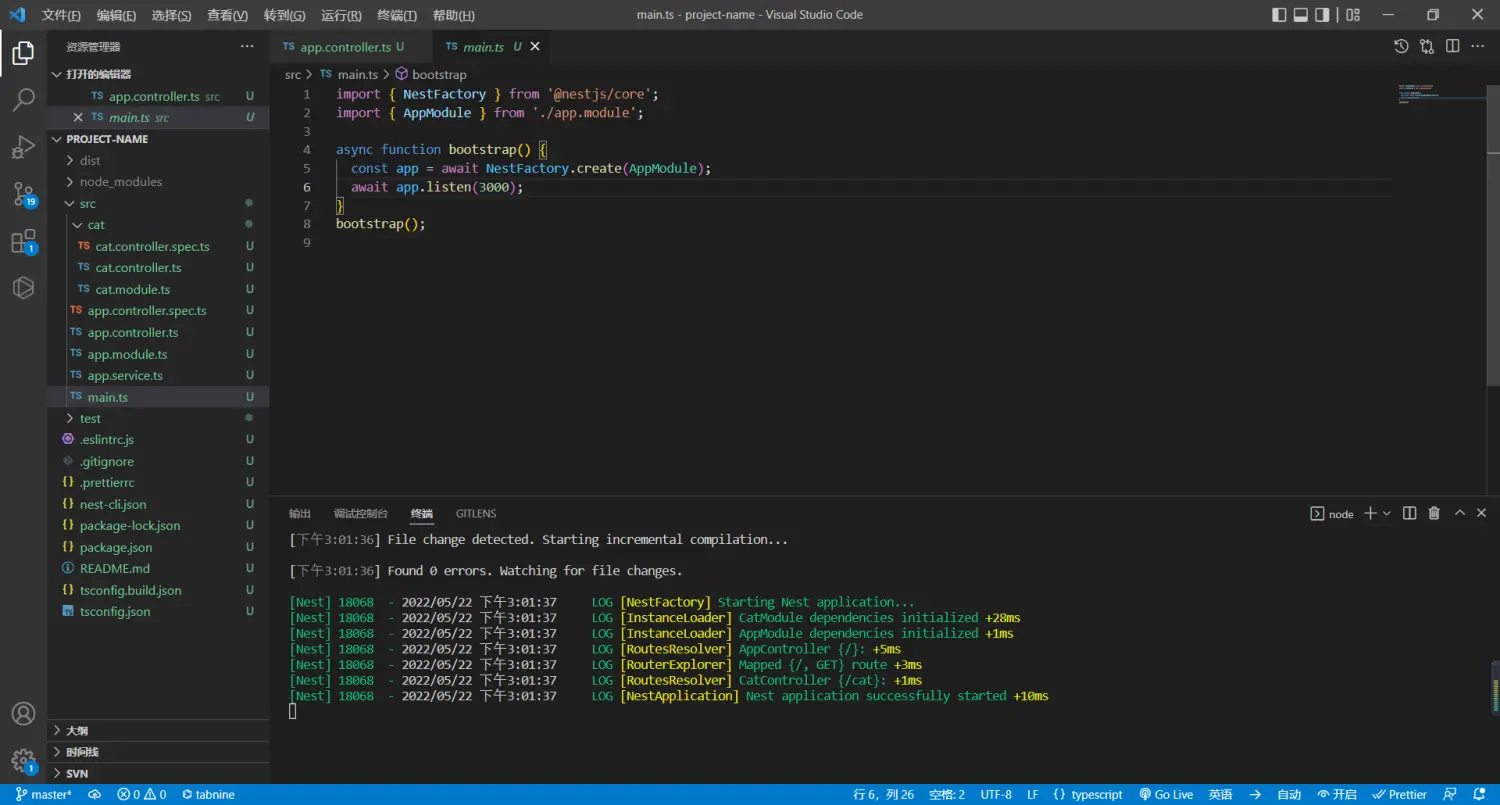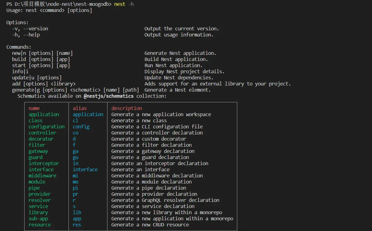 第一步:基于node创建一个Nest.js项目