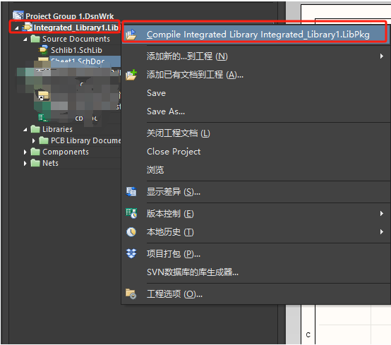 2.在新建的集成库上右键-----添加新的...到工程----Schematic.library/PCB.library。依次将原理图库和PCB库添加到集成库里面形成一个完整集成 库的项目数据库