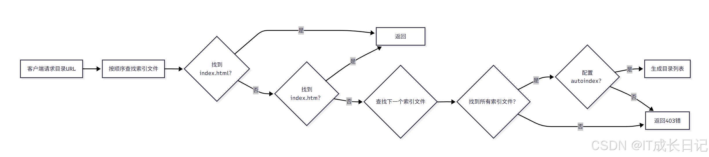 - 如果未找到索引文件且未配置autoindex,返回403错误