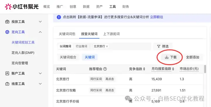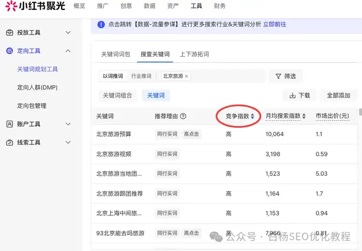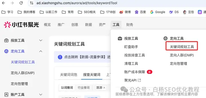 第1个工具:小红书聚光平台-关键词规划工具