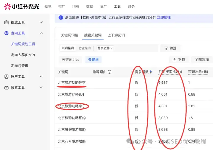 企业做小红书关键词搜索排名推广时,怎么找到小红书上有一定搜索量但竞争度低的蓝海词?