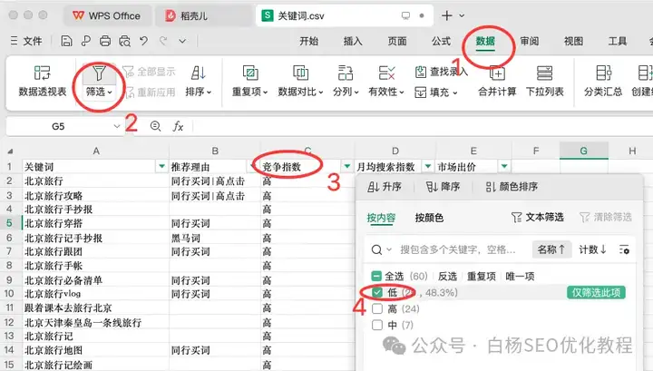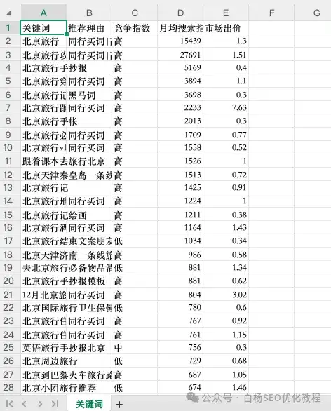 当然,最好的方法也是下载这个表格到EXCEL筛选,白杨SEO这里就不举例了。