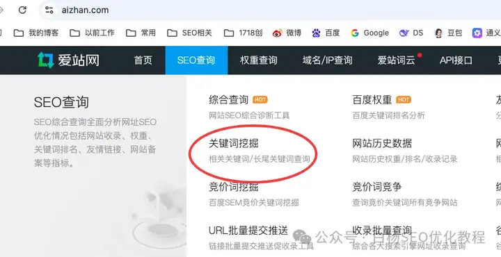 第一步打开爱站首页找到关键词挖掘(当然要登录账号,免费版也行);