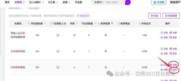 这里还有一个小技巧,就是可以选市场出价高一点的,比如北京旅游背包比北京旅游包包更好。