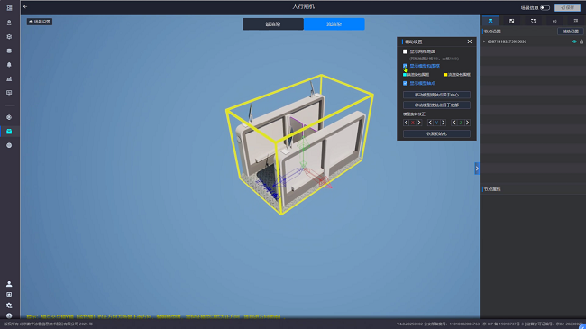 支持设置模型 基准轴点、基准方向、调整模型镜像翻转 等基础属性;支持显示 地面标尺网格、模型包围盒等 编辑辅助信息;支持调整 时间/光照/天气/季节/特效 等环境参数,辅助预验证模型在场景中的效果表现。