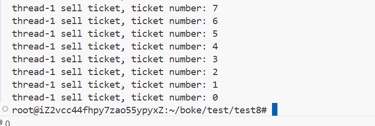 Mutex mutex;void* route(void* arg) {char* id = (char*)arg;while(1) {LockGuard lock(mutex);if(ticket > 0) {sleep(1);--ticket;printf("%s sell ticket, ticket number: %d\n", id, ticket);}else {break;}}
