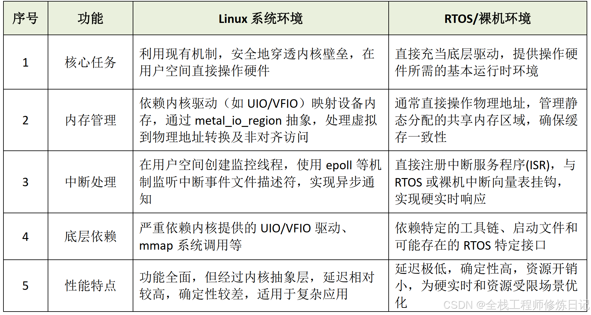 但在Linux和RTOS两种环境下存在以下功能差异: