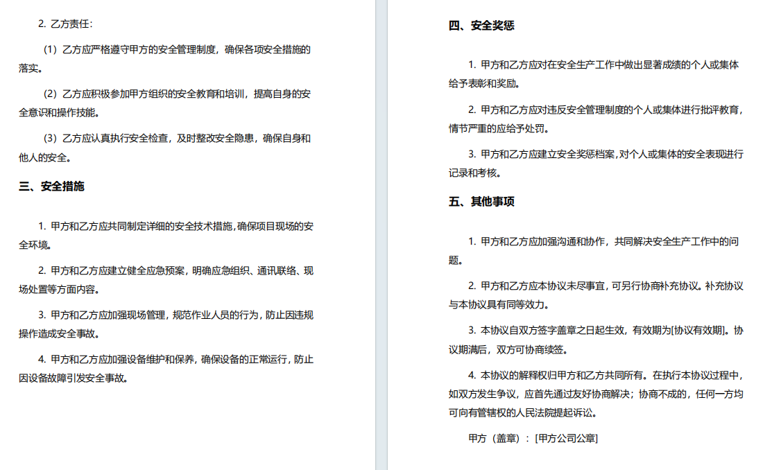 (2)乙方应建立健全安全监管机制,完善安全监管制度,提高安全监管效率。