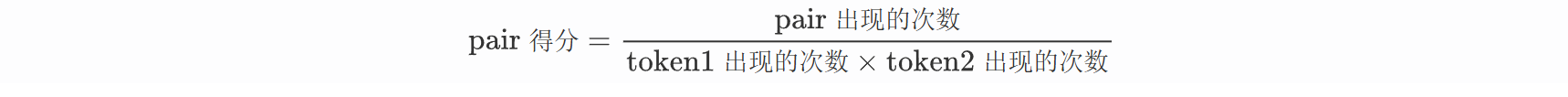 这个公式衡量的是A和B的互信息。如果A和B经常在一起出现(freq_of_pair 高),而它们各自又不是很常见的字符(freq_of_token1 和 freq_of_token2 不高),那么它们的得分就会很高。这意味着A和B的组合具有很高的“粘性”,应该被合并成一个新的子词单元。