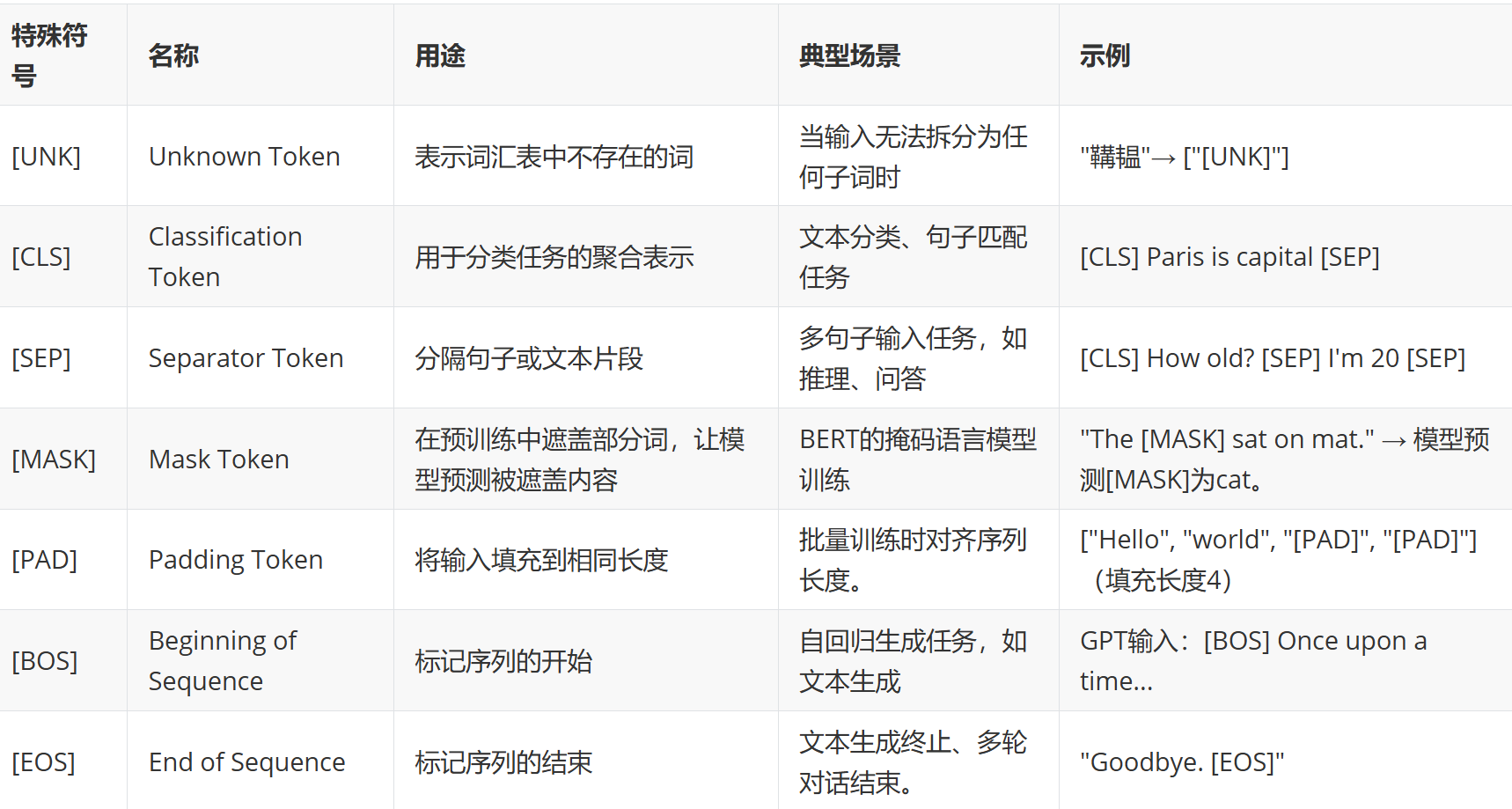 任务适配:支持分类([CLS])、生成([EOS])、预训练([MASK])等不同需求。