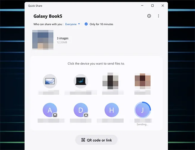 在 Windows 电脑上,请确保已安装“快速共享”应用。在 Android 手机上,请从“快速设置”面板启用“快速共享”设置。