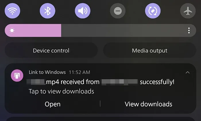 要传输文件,只需将其从电脑桌面或文件夹拖放到 Phone Link 应用窗口中即可。该文件将保存到手机存储空间。