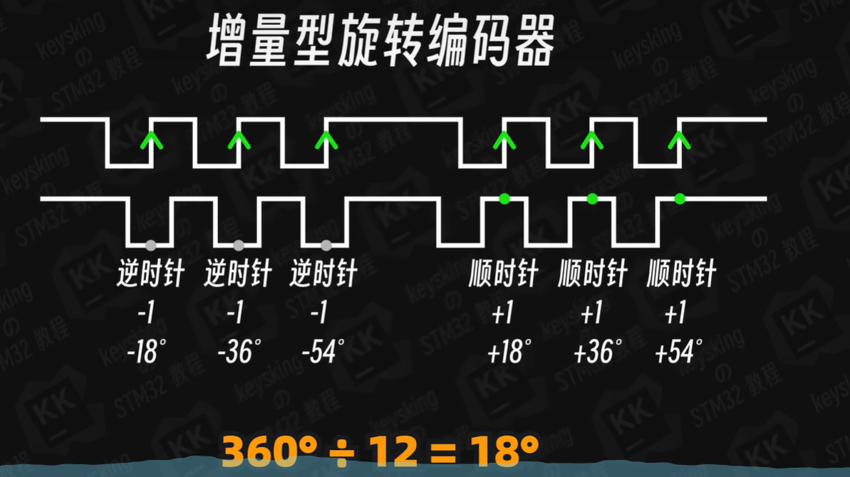 它每360度输出20个脉冲,也就是每个脉冲代表18度,用脉冲数量乘以18度就可以得出真实的旋转角度