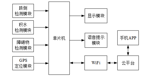 WiFi模块:用于将盲人的GPS坐标信息传输到云平台,实现远程监控功能,让监护人随时了解盲人的行动轨迹。