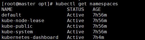 [root@master opt]# kubectl get namespaces