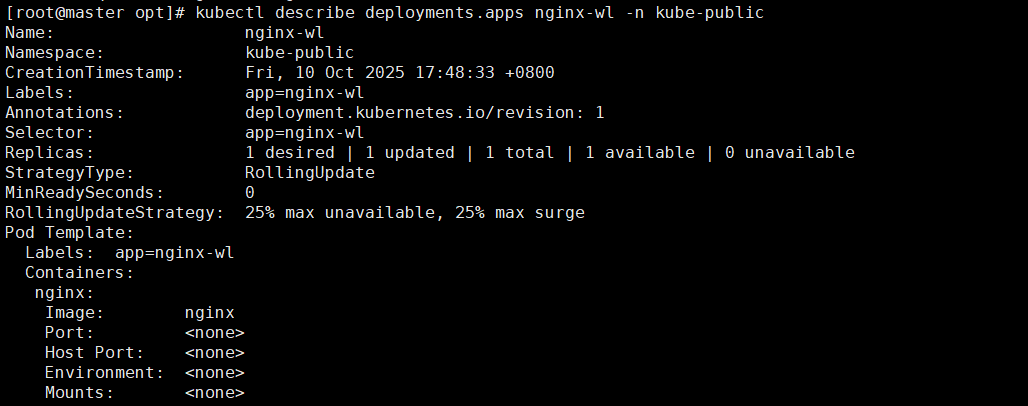 [root@master opt]# kubectl describe deployments.apps nginx-wl -n kube-public