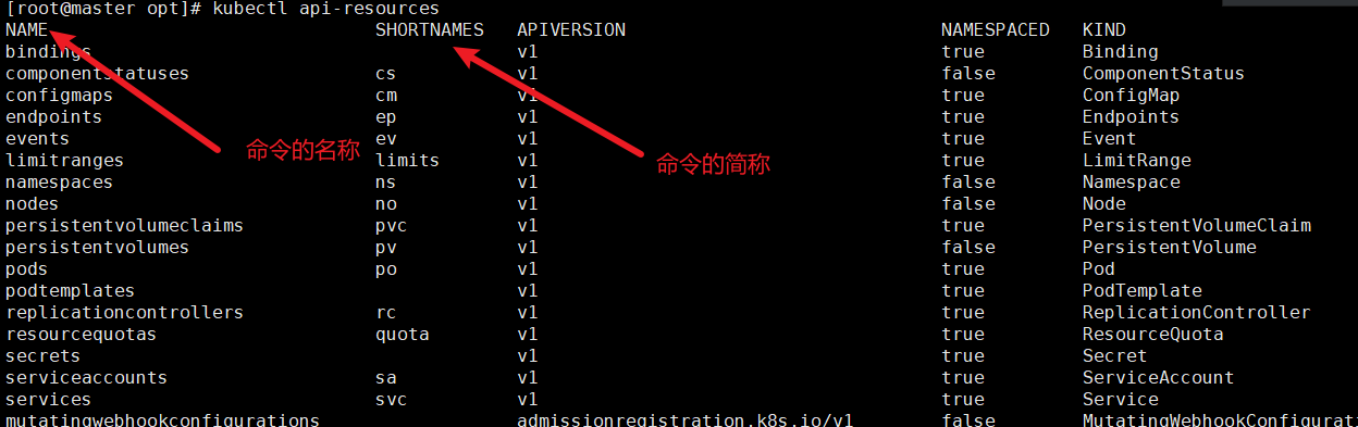 [root@master opt]# kubectl api-resources