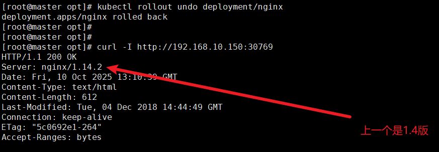 [root@master opt]# kubectl rollout undo deployment/nginx
