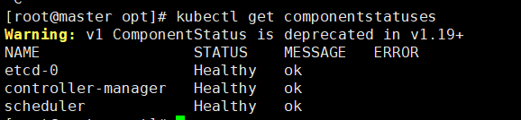 [root@master opt]# kubectl get componentstatuses