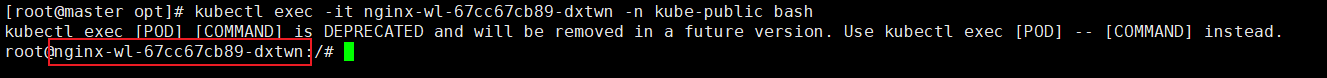 [root@master opt]# kubectl exec -it nginx-wl-67cc67cb89-dxtwn -n kube-public bash