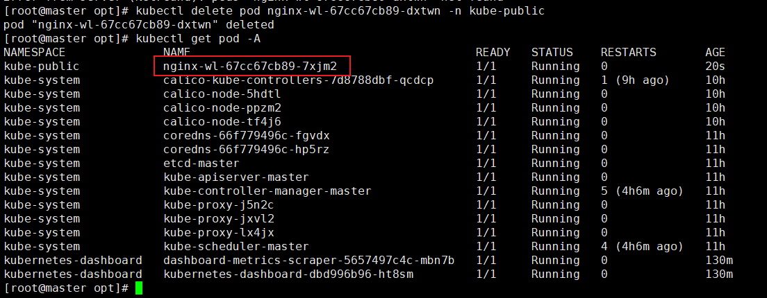 [root@master opt]# kubectl delete pod nginx-wl-67cc67cb89-dxtwn -n kube-public