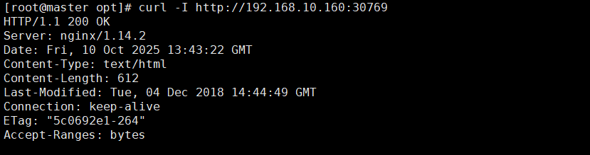 [root@master opt]# curl -I http://192.168.10.160:30769