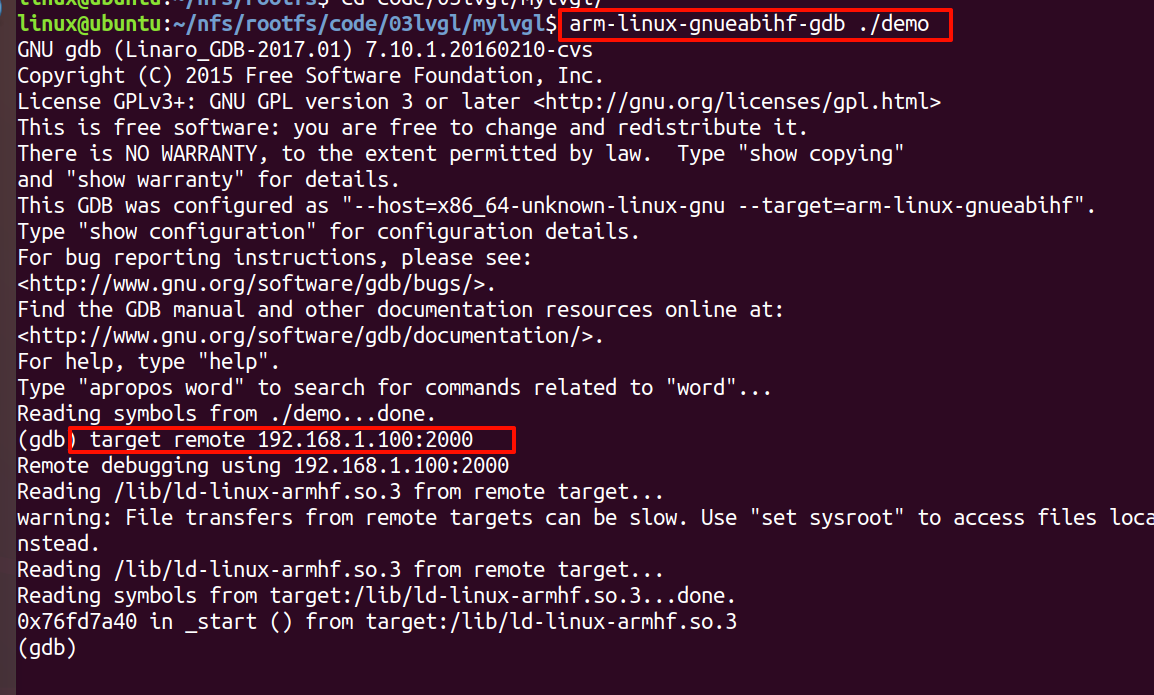 进入代码mylvgl目录里, 执行gdbserver :2000 ./demo