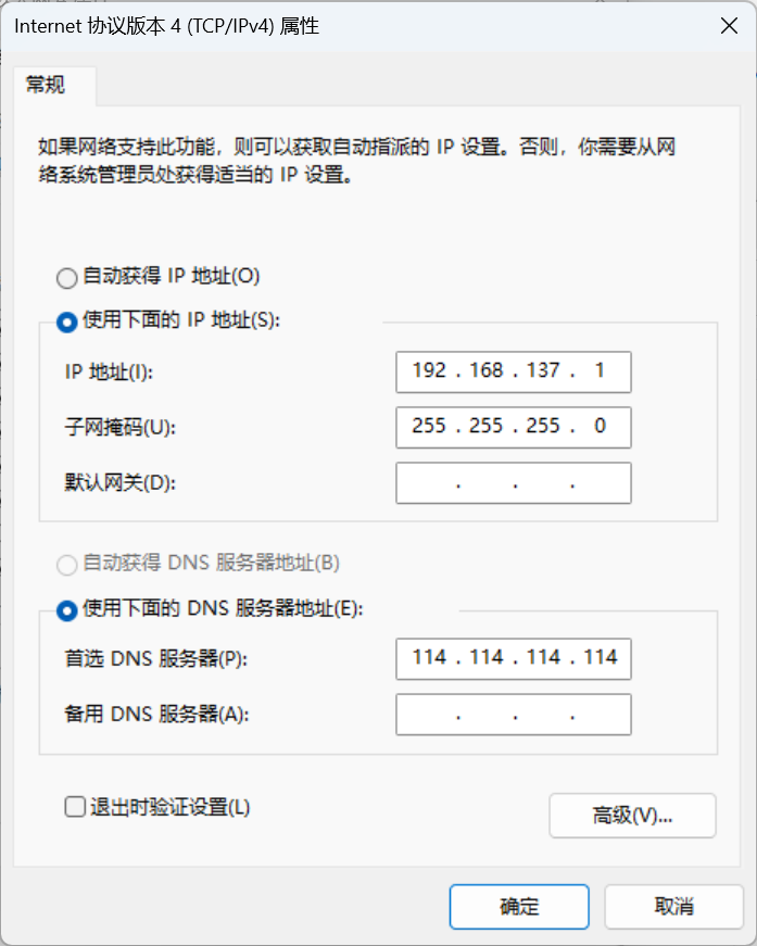 sudo ip addr add 192.168.137.100/24 dev eno1# 将默认网关设置为你的电脑的IP