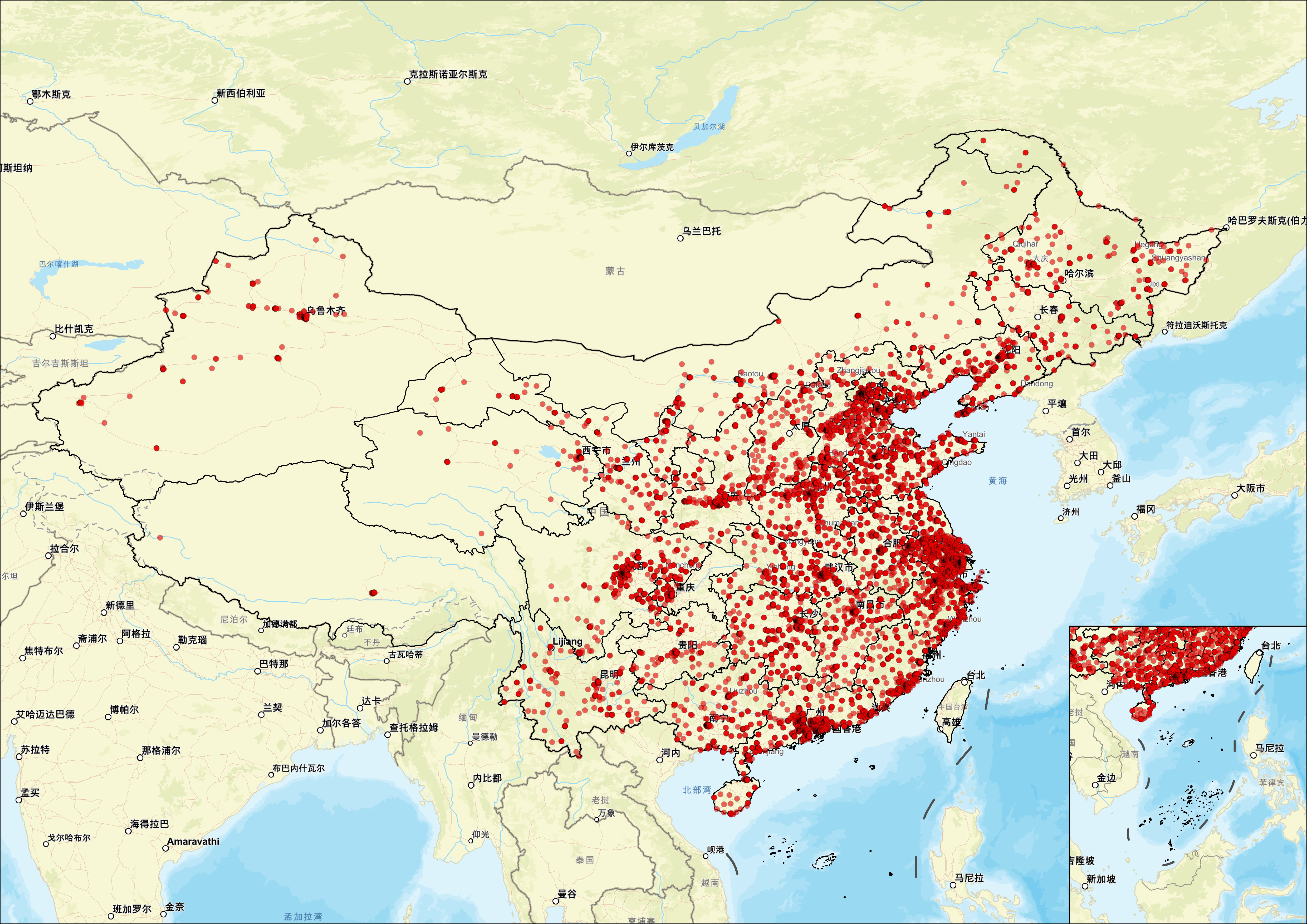 中西部地区网点呈梯度递减分布,但覆盖广泛且逐步均衡化。以成都、重庆、武汉、西安、郑州等中部和西部省会城市为中心,形成了次级高密度圈层,向周边地市和县域辐射延伸。虽然整体密度低于东部,但建行通过“轻型网点”“智慧网点”“普惠金融服务站”等方式,实现了对中西部主要城市和重点县域的全覆盖,尤其在成渝双城经济圈、长江中游城市群等国家战略区域布局密集,体现出其支持区域协调发展战略的主动作为。此外,建行还特别关注中西部地区的特色产业发展需求,例如农业产业化、文化旅游业等,通过定制化的金融服务方案,助力地方经济多元化发展。