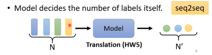 还有第三种可能,我们不知道输出多少,由机器自行判断。输入可能有N个,输出则不固定,例如翻译句子,语言转变为文字等