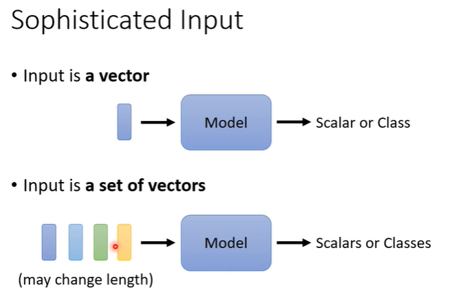 之前我们学习的network的输入都是一个向量,假设遇到更复杂的问题,我们的输入是一排向量,而且输入的向量数目也可能改变,这种时候我们如何处理?