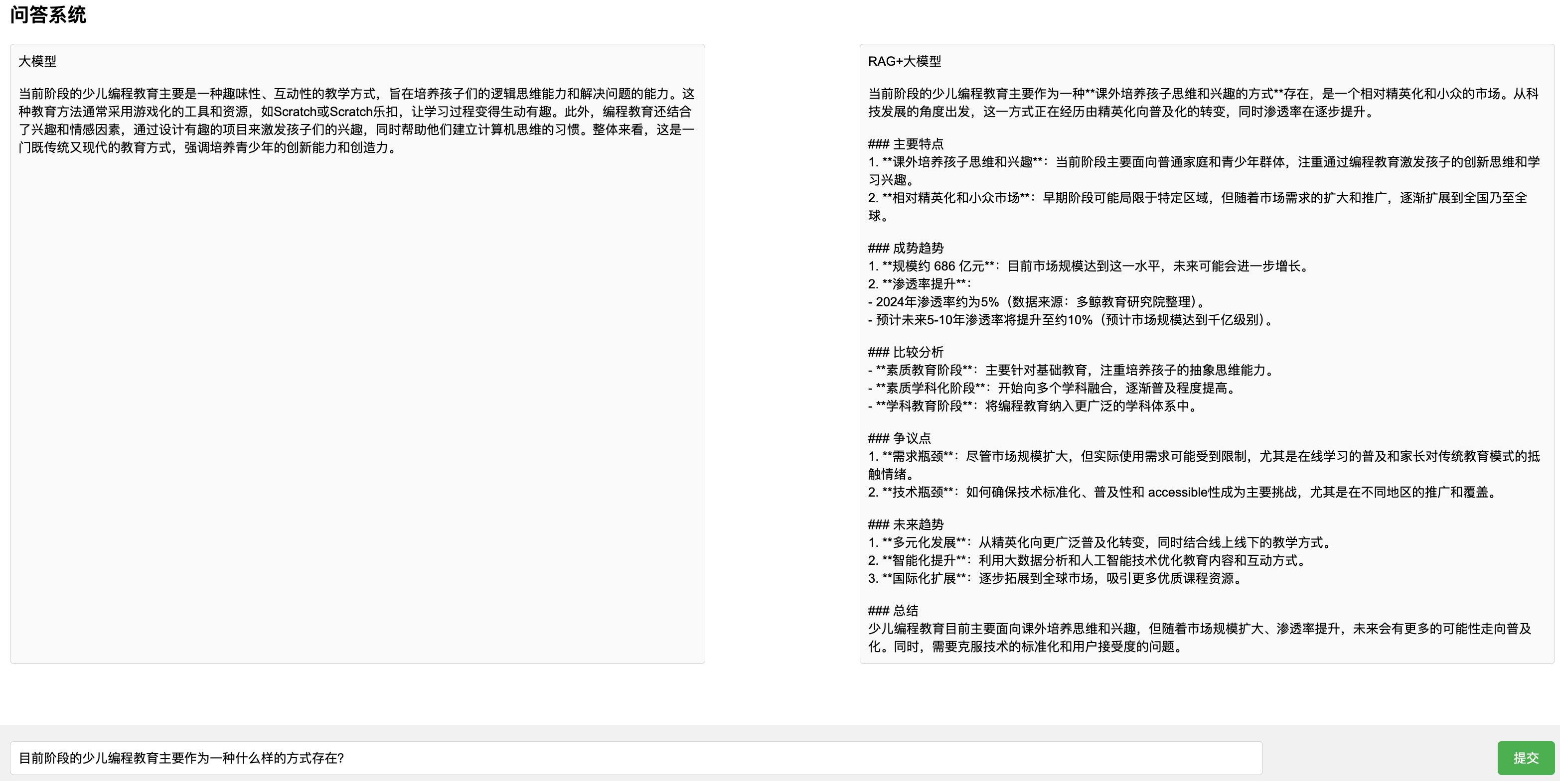 可以看出,通过将数据库中最新的内容提供给大模型,大模型能够给出更精确的回答。