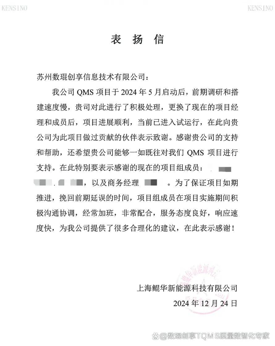 未来,鲲华科技将继续深化拓展QMS在研发质量、体系质量、质量成本、质量追溯等方面的应用,构建更全面的智能制造质量生态。鲲华科技的QMS实践表明,数智化质量管理的核心是“数据贯通+智能决策+生态协同”。对于当今处于高速发展期的科技制造企业而言,选择一条与企业战略相匹配的质量数字化路径,是实现可持续竞争力提升的关键一步。数琨创享将持续深耕新能源制造业质量管理领域,以优质的产品技术服务与深刻的行业洞察,为更多制造型企业客户提供TQMS数智化全面质量管理解决方案,助力企业打造全流程质量管控闭环,实现质量管理的全面升级。