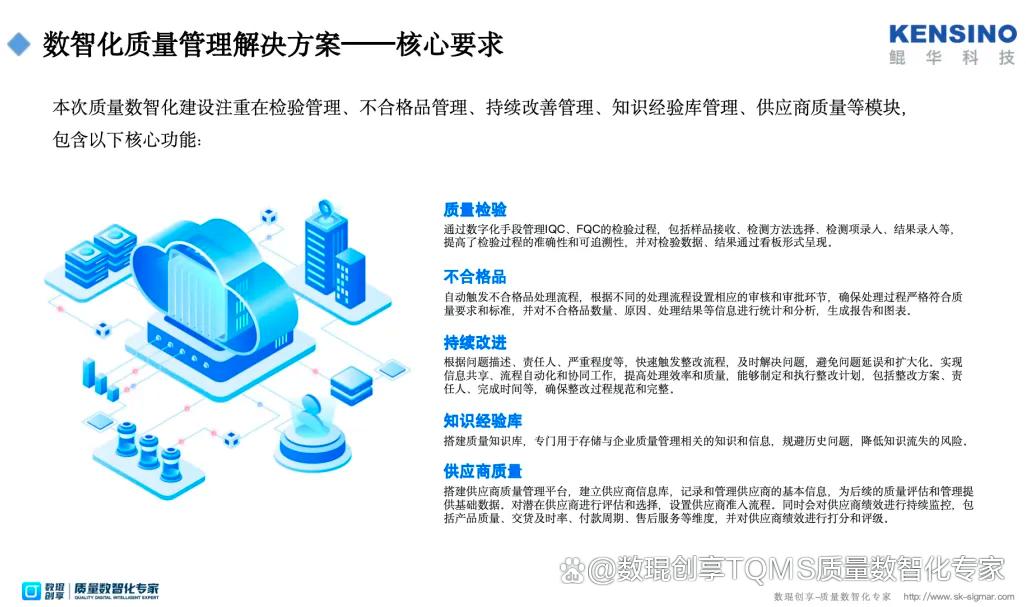 1 业务一体化:建设覆盖检验、不合格品、改进、知识库、供应商管理等模块的统一平台;