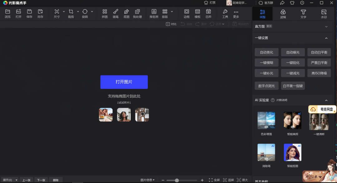 软件下载 【名称】:****光影魔术手_4.7.2.1192 【大小】:****138M 【语言】:简体中文 【安装环境】:Win7/Win8/Win10/Win11 夸克 其他网盘 软件介绍 光影魔术手是迅雷公司旗下的图像处理软件。AI 智能抠图、人像美容、智能调色、批处理、证件照排版冲印等功能强大、简便易用。轻松实现大师级调色,一键秒改千图。 软件安装 1、 下载安装包 2、看图这个工具自己小需求哈,我们点击【自定义安装】自定义安装路径 3、点击【安装】 4、软件界面