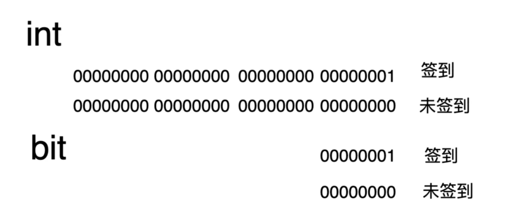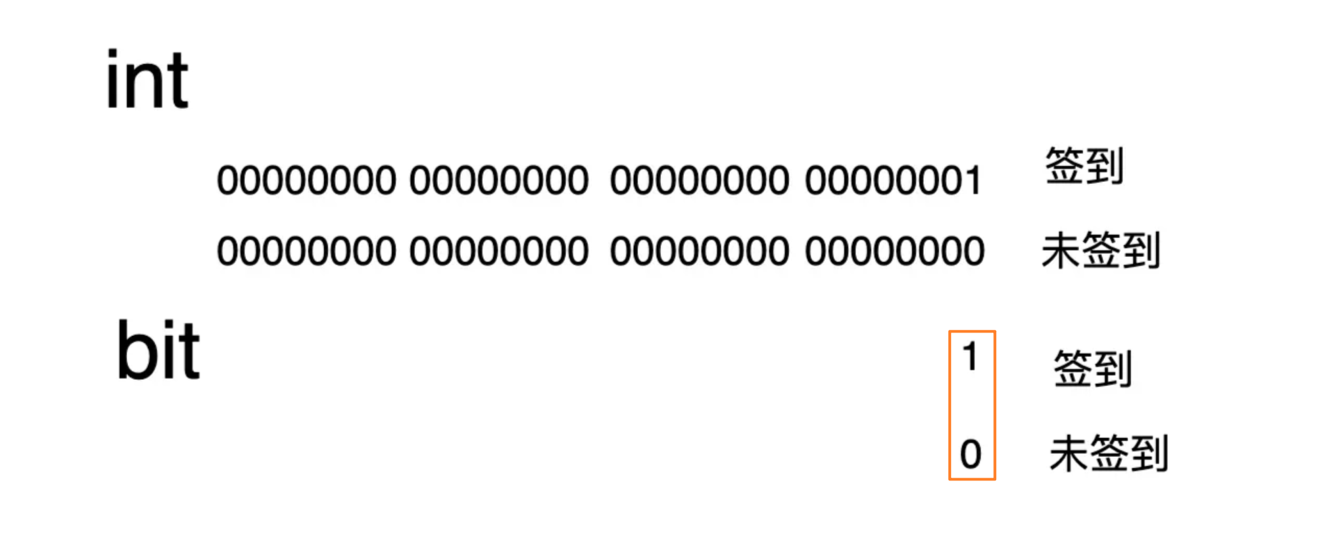 举个例子,我们签到的状态可以用 0 和 1 表示,0 代表未签到,1 代表签到。