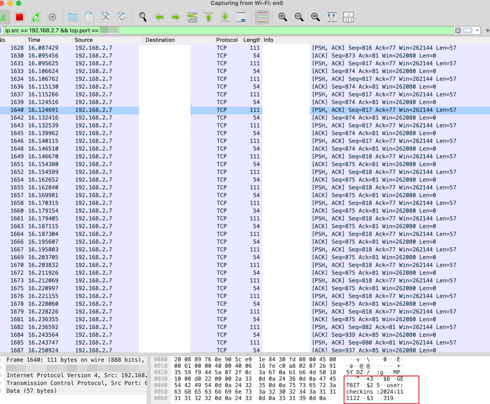 通过 Wirshark 等抓包工具可以看到,客户端发了一大堆请求给 redis 实例。仔细观察右下角的抓包数据,可以看到执行的操作: