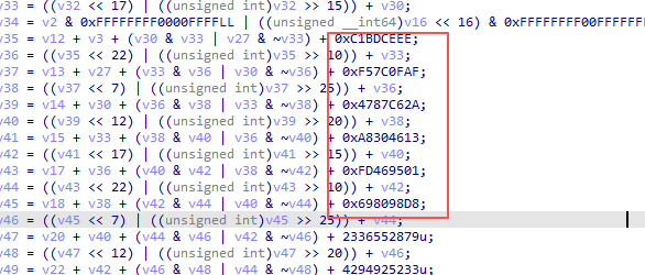第一次完整的出现输出是在这个0x16214,第一个参数是加密过程,第二个参数是结果