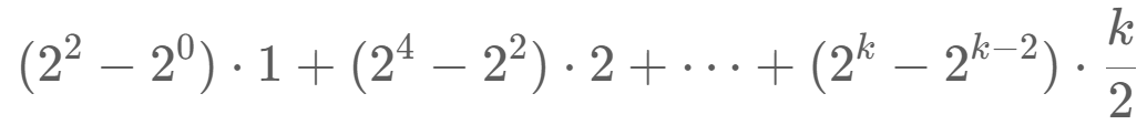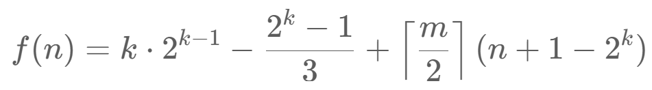 2^k ~ n 的(n-2^k+1)个数 都要 k//2 +1 次 。