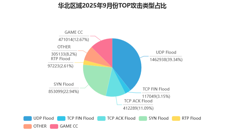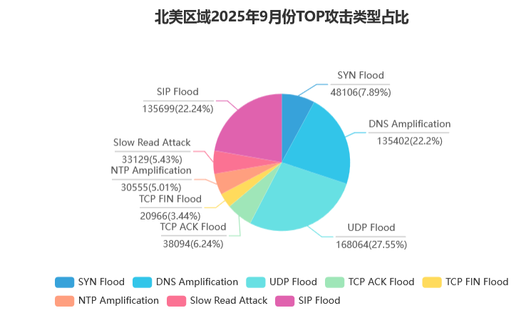 依托这套 “智能识别 + 定制防护 + 全流程监控” 的防御体系,傲盾在 9 月成功抵御多起超大规模攻击,如华北区域移动方向 504.87G 流量攻击、北美区域 801.00G 流量攻击等,核心客户业务连续性保障率达 100%。本简系统的梳理 9 月各区域攻击概况,详解防御技术的应用逻辑与实际成效,为各行业应对后续 DDoS 威胁提供实战参考,助力企业在数字化转型中筑牢安全防线。