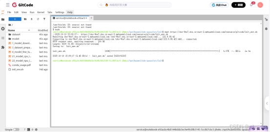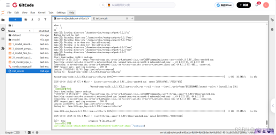 再输入 wget https://obs-9be7.obs.cn-east-2.myhuaweicloud.com/resource/gitcode/init_env.sh,回车