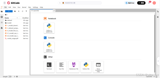 Tips1:由于gitcode默认镜像未安装vim,且云环境没有权限执行apt依赖安装,所以文件编辑需要使用notebook提供的文件管理能力。