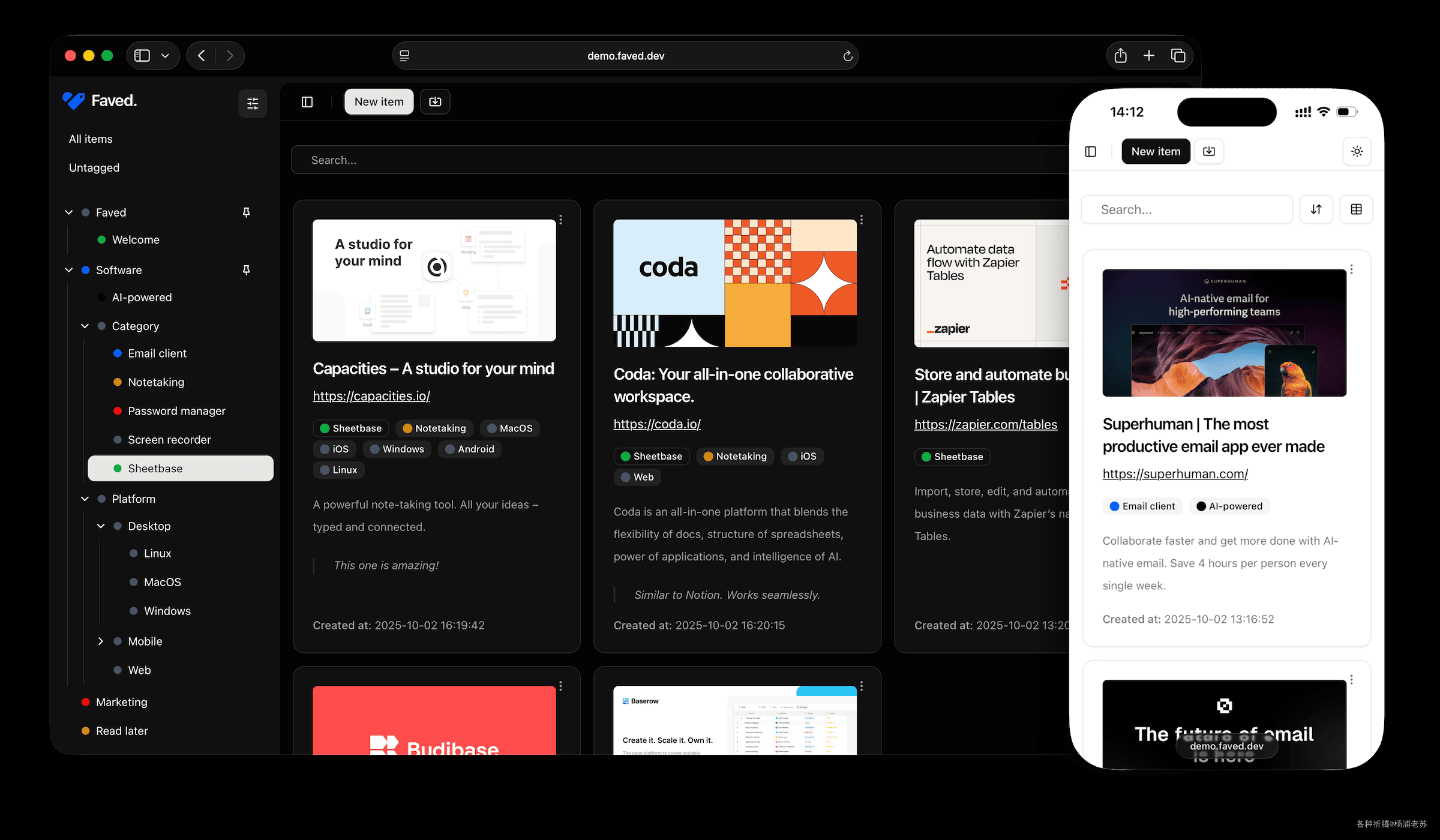 denho/faved: Free open-source bookmark manager with customisable nested tags. Super fast and lightweight. All data is stored locally.