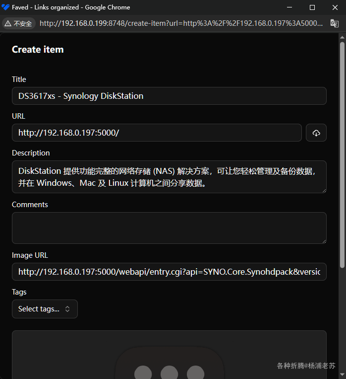 cd /volume1/docker/faved# 将 docker-compose.yml 放入当前目录# 一键启动